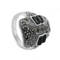 925 Silver Marcasite Ring with Black Onyx Stones | For Women