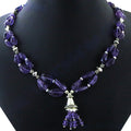 Amethyst Gemstone Tassel Necklace | Silver Statement Jewelry for Women