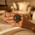 Anillo de rubí esmeralda | Anillo de cóctel chapado en oro