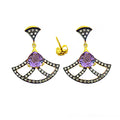 gold plating & Amethyst Fan Earrings | Gemstone Dangle Earrings for Women