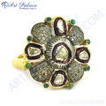 Anillo de oro con diamantes y esmeraldas para mujer | Diseño floral