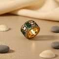gold plating Emerald Enamel Diamond Ring | Unique Statement Jewelry