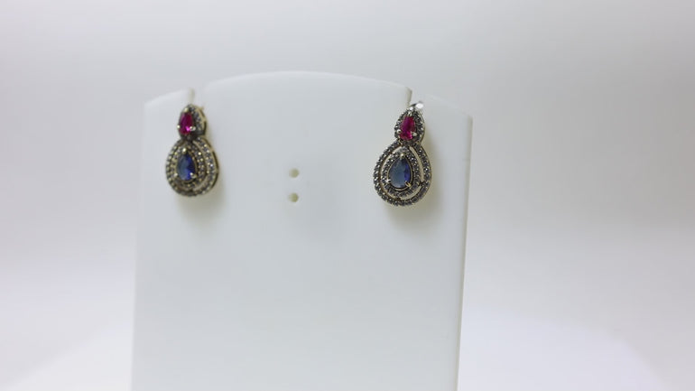 Pendientes de oro, rubí y zafiro | Diseño de lágrima | Para mujer