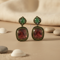 gold plating Tone Ruby & Emerald Earrings for Women | Statement Jewelry