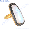 Anillo de cóctel de piedra lunar con detalles de diamantes | Anillo chapado en oro