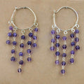 925 Silver Amethyst Beaded Hoop Earrings for Women | Gift