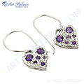 Pendientes de corazón de amatista en plata 925 para mujer | Pendientes colgantes