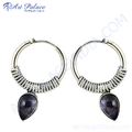 Pendientes de aro de plata 925 con piedra amatista para mujer