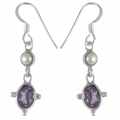 925 Silver Amethyst & Pearl Drop Earrings for Women | Gift