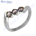 925 sterling silver ring with three oval-cut amethyst gemstones for women.