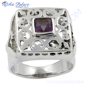 Anillo de amatista en plata 925 para hombre | Anillo de piedra cuadrada