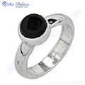 Sterling silver ring with a round black onyx gemstone. Elegant ring design for women.