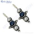Pendientes de plata 925 con piedra azul para mujer | Pendientes colgantes