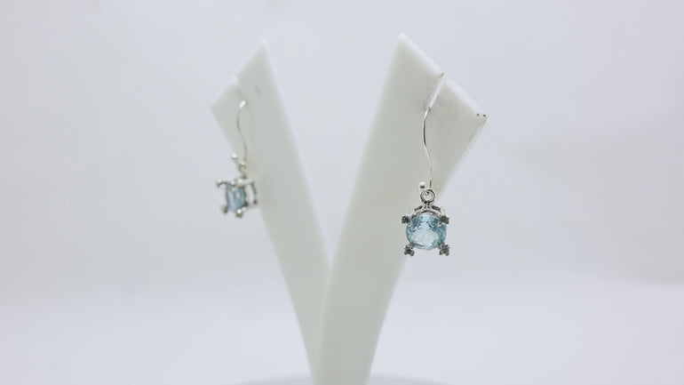 Pendientes de topacio azul en plata 925 | Pendientes colgantes para mujer