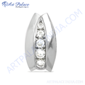 Sterling silver pendant with a row of clear cubic zirconia stones.