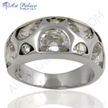Sterling silver ring with multiple cubic zirconia stones, perfect for adding sparkle to any outfit.