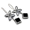 925 Silver Flower Drop Earrings with Black Stone | Women's Jewelry