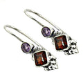 925 Silver Garnet & Amethyst Drop Earrings for Women