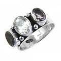 This exquisite ring features a sterling silver construction, stamped with a 925 purity mark for authenticity. The ring showcases a combination of gemstones in a statement design. The ring is ideal for those seeking unique and eye-catching jewelry. The materials used ensure durability and a lasting shine. The ring is a perfect choice for everyday wear or as a thoughtful gift. Find your perfect gemstone ring and complete your look today.