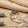 Silver 3 Stone Green Gemstone Ring for Women | Gift Jewelry