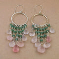 925 Silver Green & Pink Gemstone Dangle Earrings | For Women