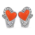 Silver Heart Earrings with Orange Enamel & Cubic Zirconia