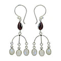 925 Silver Moonstone & Garnet Dangle Earrings for Women