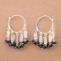 925 Silver Moonstone & Garnet Hoop Earrings for Women