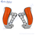 Pendientes de plata esmaltada en naranja con circonitas cúbicas | Joyería para mujer