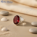 Este exquisito anillo luce una vibrante gema ovalada de granate engastada en una banda de plata de ley 925 pulida. La plata está elaborada con maestría para garantizar su durabilidad y brillo. Es ideal para quienes aprecian las piedras preciosas naturales. El granate exhibe un color intenso y una claridad excepcional. Es perfecto para añadir un toque de elegancia a cualquier atuendo. Este anillo es una pieza atemporal, ideal para uso diario o para regalar.