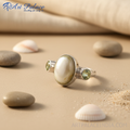 Anillo de plata con perla ovalada y piedras verdes | Anillo para mujer