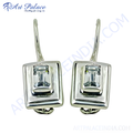 Pendientes cuadrados de plata con piedras preciosas | Joyería elegante para mujer
