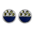 Silver Stud Earrings with Blue Enamel & Green Stone Accents