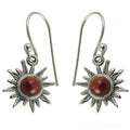 925 Silver Sunburst Earrings with Red Gemstone | Women's Jewelry