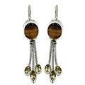 925 Silver Tiger Eye & Citrine Drop Earrings for Women