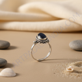 Anillo de plata de ley 925 con piedra negra para mujer | Joyería de regalo