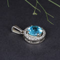 Sterling Silver Halo Blue Topaz Pendant Necklace for Women