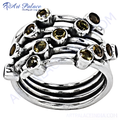 925 sterling silver multi-band ring with brown gemstones. Elegant design.