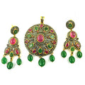 Emerald Ruby Pendant Earrings Set | Silver Dangle Set for Women