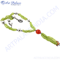 Green Beaded Necklace with Red Stone | Women's Fashion Jewelry
