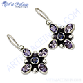 925 Silver Amethyst Drop Earrings for Women | Floral Jewelry