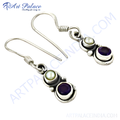925 Silver Amethyst & Pearl Drop Earrings for Women