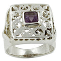 925 Silver Amethyst Ring for Men | Square Stone Ring