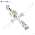925 Silver Ankh Pendant with Moonstone | Egyptian Jewelry