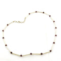 Silver Bead Bar Necklace | Red Gemstones | For Women