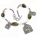 Silver Beaded Necklace with Green Gemstone Pendants | For Women