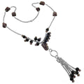 Silver Beaded Tassel Necklace with Gemstone Beads | Women's Jewelry