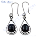 925 Silver Black Gemstone Teardrop Earrings for Women