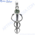 925 Silver Medical Caduceus Pendant with Green Gemstone | Gift