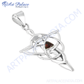 Sterling silver Celtic knot pendant with a triangular red garnet gemstone in the center